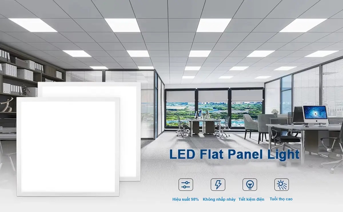 Đèn LED Panel sử dụng tấm tán quang chất lượng cao, cho ánh sáng mềm mại, không gây mỏi mắt – lý tưởng cho môi trường làm việc, học tập.